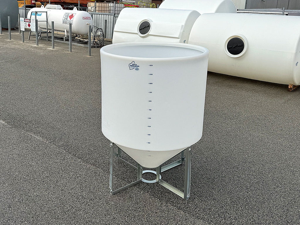 Ideal for mixing or batching solutions, the conical bottom offers complete drainage. As used for fertigation, the making of Bio-Diesel, ideal tank for dosing and pre-mixing of Spray Chemical (liquid and granular) prior to filling sprayer. Also can be used for brewing , commercial and industrial applications